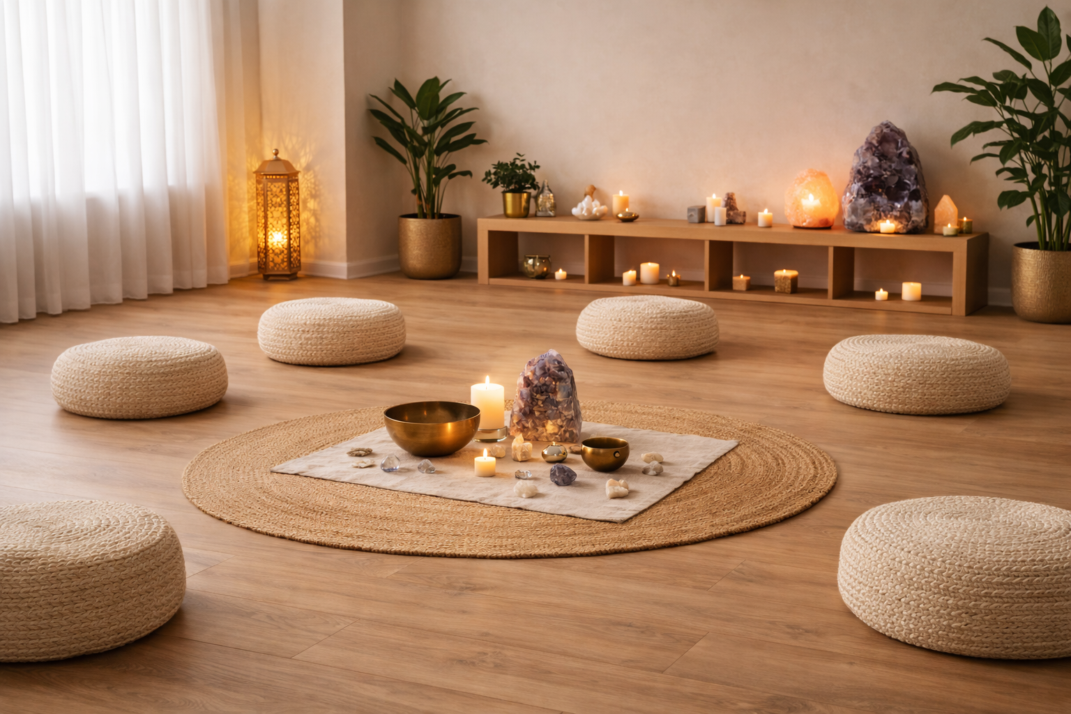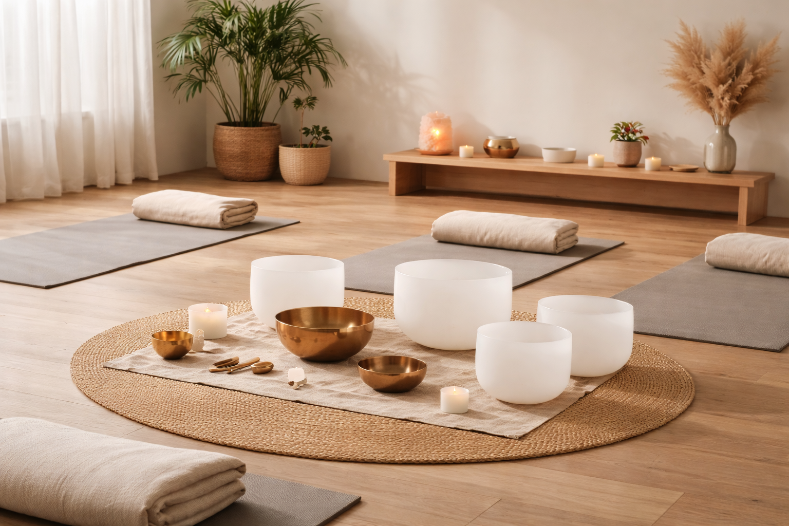 A warm space, gentle guidance, around 60 minutes of immersive sound, and time to rest afterwards.